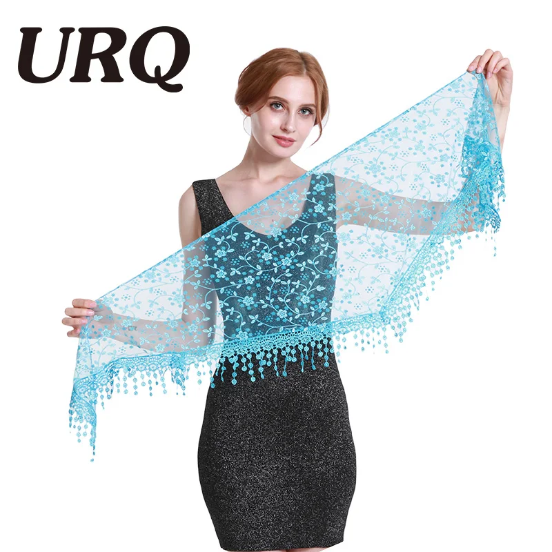 | Новый бренд, летняя женская кружевная кисточка, прозрачный металлик, Женский цветочный принт, треугольная повязка, цветочные шарфы, шаль | |