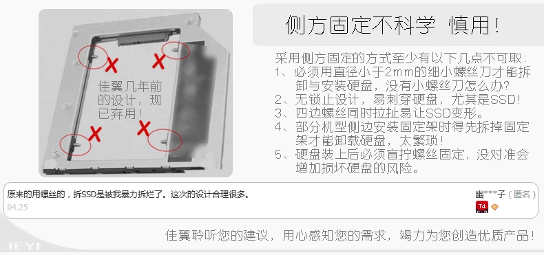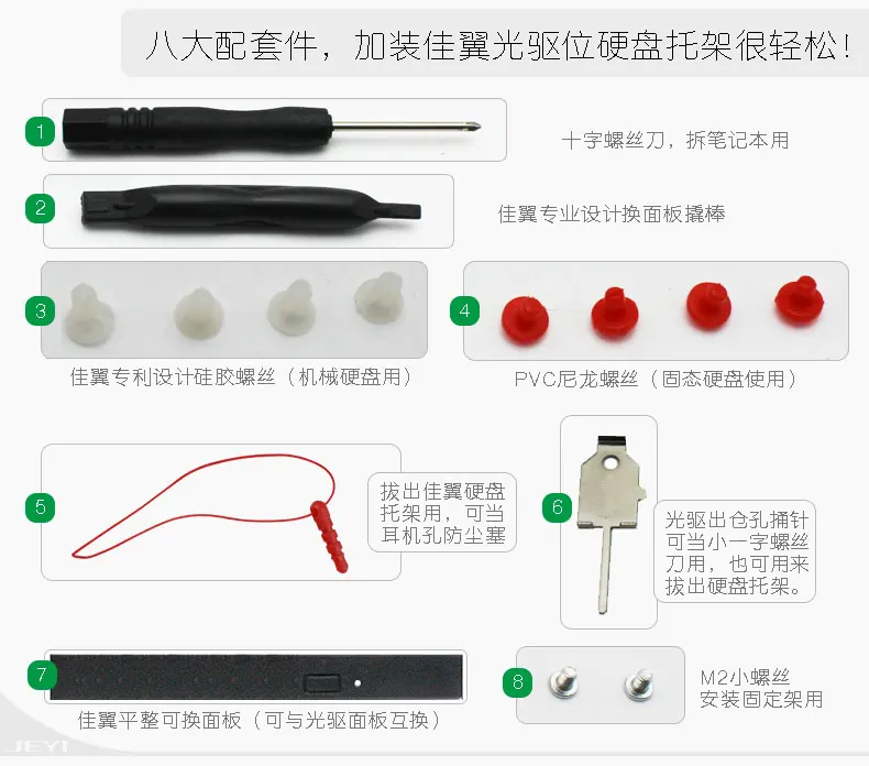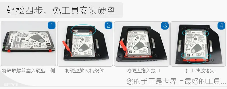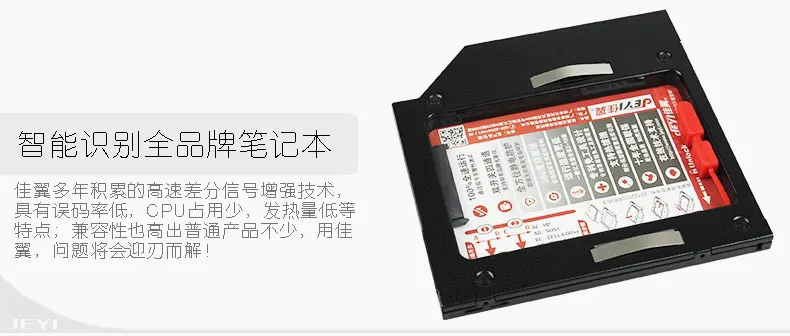 [Наименование товара] Бесплатная доставка JEYI жесткий диск для оптического привода (Deluxe Edition) [Модель] JEYI H95 (с запатентованной технологией защиты мощности, Интеллектуальный мастер, страхование от короткого замыкания, повышение сигнала) Сфера применения с 8,9 мм/9,0 мм/9,2 мм/9,5 мм SATA Оптический привод для ноутбуков, одна машина, запасные части для серверов и т. д. (не стикер поверхность дарит ощущение еще тоньше и лучше рассеивания тепла). [Применимо] Жесткий 2,5 'sata I II III от имени полный спектр жесткий диск HDD/SSD; У вас есть 7 мм/9,5 мм/измерение толщины. [Услуги] Год замены, пятилетняя гарантия [Список] Содержит список болтов для жесткого диска * 1, * 4 красных силиконовых винта, многофункционального аппаратного гаджета * 1, * 1 многоцелевого пластикового гаджета, легко установить веревку * 1, высокая прочность Siamese Ударопрочный силиконовый профиль * 1, * 1 Отвертка Phillips, плоская панель привода * 1.