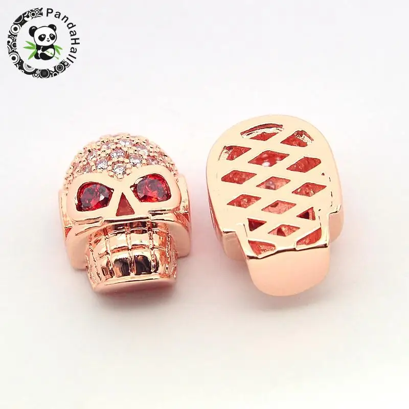 Модные латунные микро проложить кубического циркония черепа Полые бусины, без кадмия и без никеля и без свинца, смешанные цвета