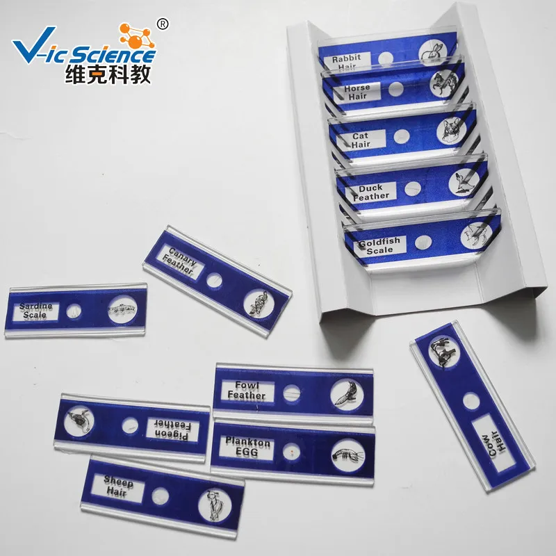 Это смешанный набор, который состоит из растений, животных, показывает волоски или перо сравнения. VIC-M01 планктона яйцо VIC-M02 кошачья шерсть VIC-M03 из кроличьей шерсти VIC-M04 овец волос VIC-M05 корова волос VIC-M06 из утиных перьев VIC-M07 Канарские перо VIC-M08 из конского волоса VIC-M09 голубь перо VIC-M10 птицы перо VIC-M11 сардины весы VIC-M12 Золотая рыбка весы