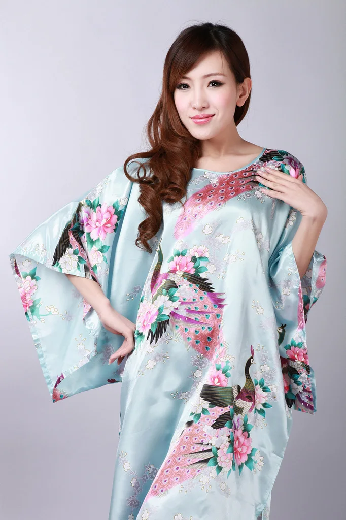 Шелковое кимоно, халат, женский Атласный халат, пижама с павлином для женщин, ночное белье подружки невесты, летний халат 16