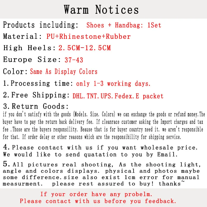 A2.обычно после оплаты, в основном модель есть на складе. Мы можем отправить комплект из обуви и сумки вам как можно скорее. Но некоторые модели должны сделать заказ около 2-3 дней. В любом случае отправить вам в ближайшее время.