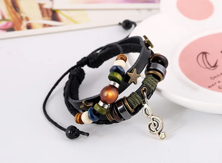 Новый кожаный браслет ручной работы, мужские и женские браслеты с подвесками, мужские ювелирные изделия, Летний стиль, браслет для девочек и мальчиков US $2,09