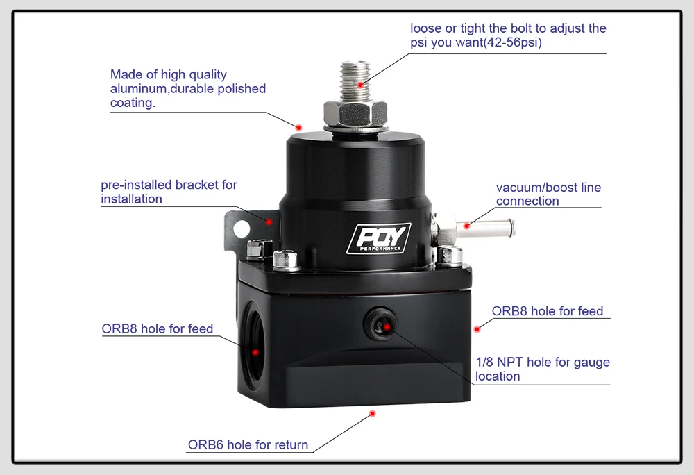 FREE SHIPPING AN8 high EFI pressure fuel regulator w/ boost -8AN 8/8/6 PQY Fuel Pressure Regulator