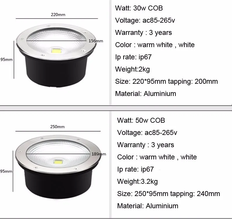 30W cob подземный светильник светодиодный Llight открытый Скрытая лампа IP65 12V/24V или AC85 ~ 265V