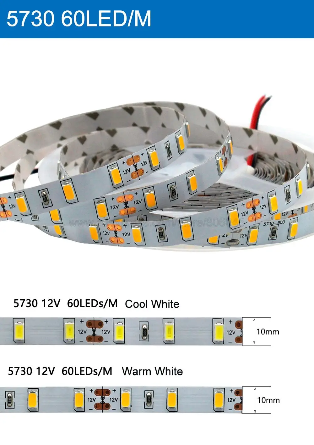 ![5M DC12V 60LEDM 5630 SMD Nature White 4000-4500K Flexible LED Strip, IP20 Non-waterproof, IP65 EpoxyIP67 Silicone Wateproof 3]()