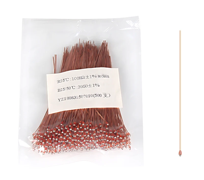50X100K ohm NTC 3950 Термисторы Обратите внимание: Показано на рисунке сумка 500 шт./пакет. Поэтому, когда мы отправляем посылка в ваш заказ, мы берем из сумки термисторы 50 шт. и помещаем их в пакет opp. Наконец, только 50 шт. упаковки для доставки.