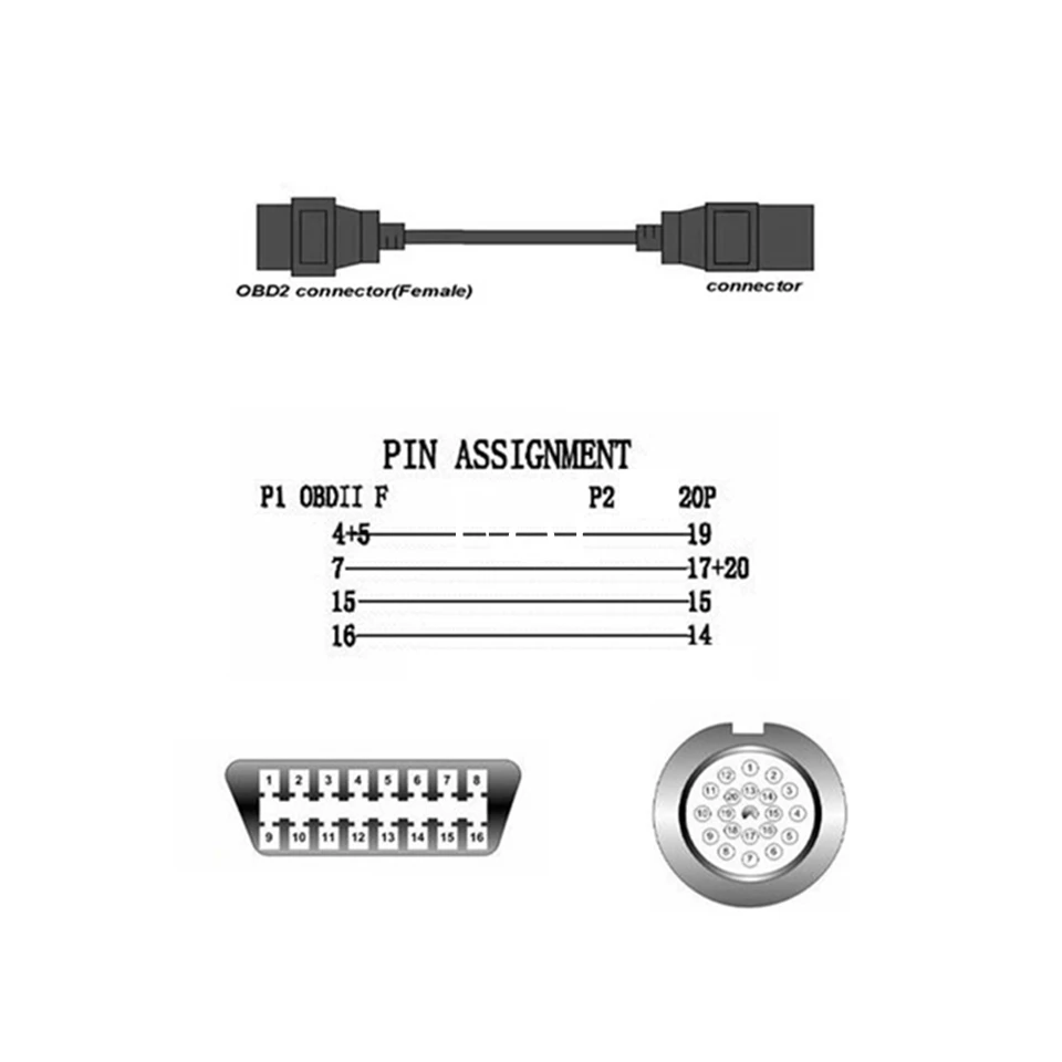 Для BMW 20PIN до 16PIN OBD2 диагностический разъем