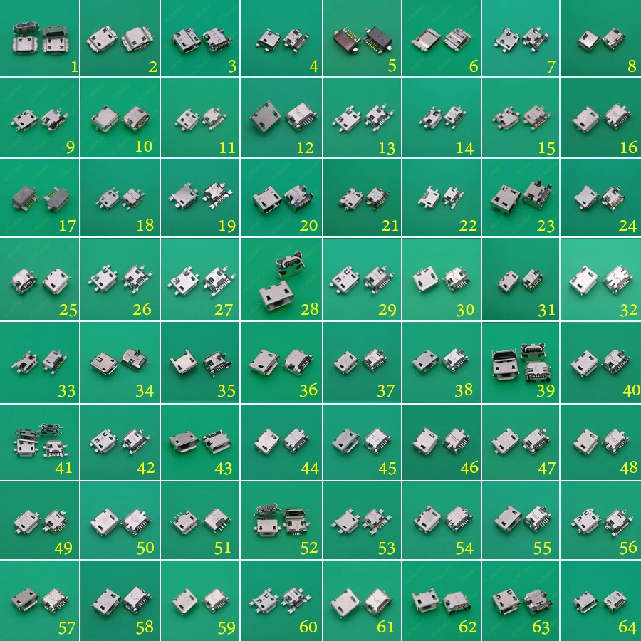 64 модели 640 шт микро usb разъем порт 5 контактов мини usb разъем для Samsung HTC Lenovo ZTE...mobi le phone tablet pc mid 64 модели, 10 шт/каждый, всего 640 шт./лот