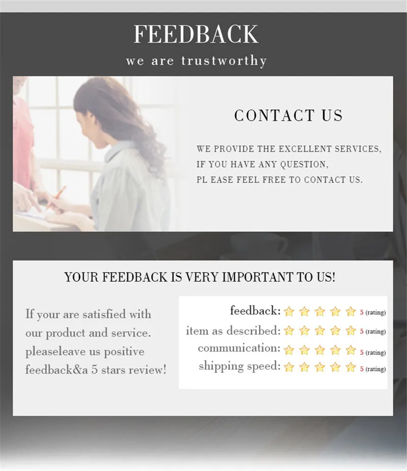1. Зарегистрированные методы доставки обеспечивают международный номер отслеживания для заказа. Такие как Стандартная доставка Aliexpress, Почта Китая Заказная воздушная почта, специальная линия-YW и ePacket и т. д. 2. Незарегистрированные способы доставки не имеют международного номера отслеживания. Это означает, что заказ в соответствии с методами доставки не может быть отслежен после того, как он покинет страну происхождения. Незарегистрированный способ доставки включает Cainiao Super Economy, Почта Китая Ordinary Small Packet Plus, 4PX Singapore Post OM Pro, Correos Economy, SF Economic Air Mail, SunYou Economic Air Mail, Yanwen Economic Air Mail и т. д. 3. Обычно Доставка заказа незарегистрированной доставки занимает около 30 дней, но это всего лишь расчетное время. 45-60 дней в обычный период доставки. 4. Если у вас есть какие-либо вопросы, пожалуйста, не открывайте спор, пожалуйста, свяжитесь с нашей службой поддержки клиентов напрямую, мы предоставим вам лучший сервис.
