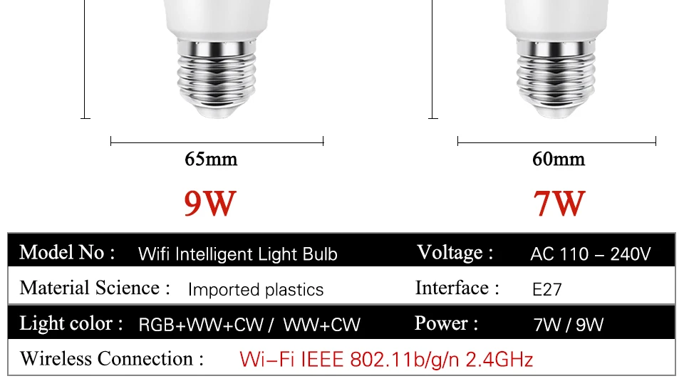YYXMB Светодиодная лампа Smart tuya WiFi E27 9 Вт светильник RGBCW с регулируемой яркостью Совместимость Amazon ECHO/Google Home/IFTTT Голосовое управление