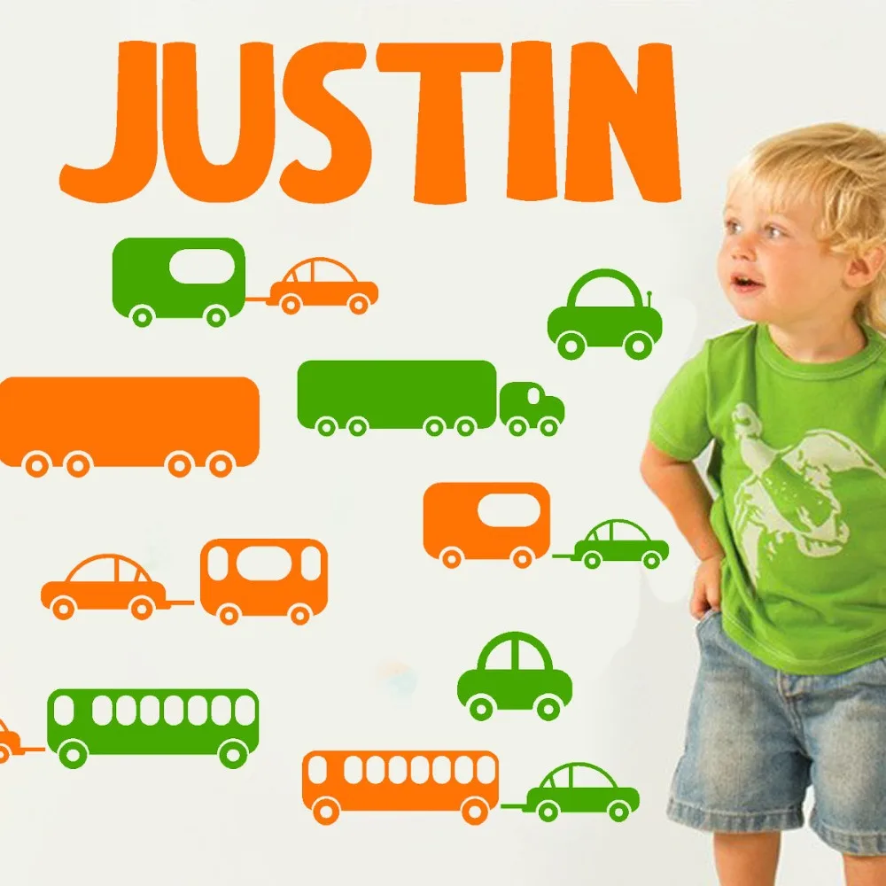 Настройка имени для мальчиков виниловая наклейка на стену художественная наклейка для дома детская комната поезд авто украшение для комнаты мальчиков KW-289US $15,90 /Комплект
