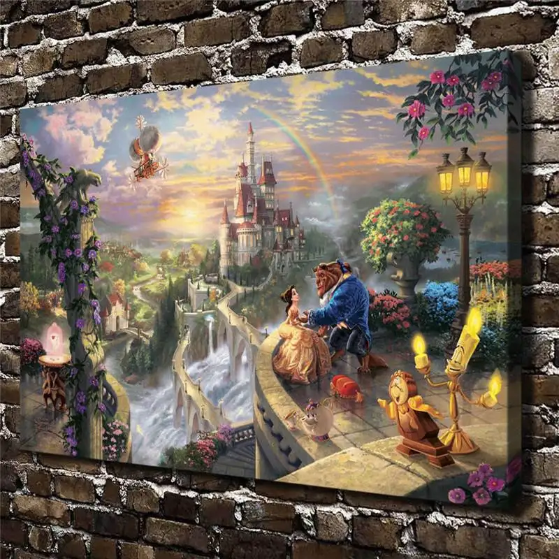 H1135 Томас Кинкейд Красавица и чудовище, HD холст печать украшение дома гостиная спальня настенные картины художественная живопись-34968