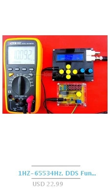 Функция DDS/генератор произвольной формы использует метод прямого цифрового синтеза (DDS), FPGA дизайн, интерьер сборных 7 видов широко используемых сигналов, в то время как пользователи также могут редактировать выход 8 бит, 256 точек пользовательский произвольный Сигнал s; Его Простота в использовании, высокая стабильность сигнала, низкое искажение, с выходной мощностью 1 Вт, Широкополосное измерение частоты и функции счетчика. Амплитуда выходного сигнала и смещение постоянного тока можно отрегулировать Формы волны: синус, квадрат, треугольник, пандус, Пользовательская форма волны (Arb ) , широко используемые импульсы, шум, электрокардиограммные формы. ОСНОВНЫЕ ТЕХНОЛОГИЧЕСКИЕ ДАННЫЕ Выход сигнала Синусоидальная выходная форма, квадратная волна (переменный рабочий цикл), треугольная волна, sawtooth, Произвольные формы сигналов, часто используемые импульсы, шум, ЭКГ, ам, FM и другие формы сигналов. Выходная амплитуда ≥ 0.5-8Vp-p (без нагрузки) Выходное сопротивление 10 Ом ± 10% Смещение постоянного тока ± 3 в Частотный диапазон 0,01 Гц ~ 50 кГц Разрешение частоты 0,01 Гц (10 МГц) Точность частоты ± 5 × 10-6 Стабильность частоты ± 2 × 10-6/3 часа Синусоидальное искажение ≤ 0.8% (Контрольная частота 1 кГц) Линейность треугольной волны ≥ 98% (0,01 Гц ~ 10 кГц) Квадратная волна увеличение времени осени ≤ 100 нс Квадратный волновой рабочий цикл диапазон 1% ~ 99% Функция счетчика Диапазон подсчета 0-65535 Диапазон измерения частоты 1 Гц ~ 20 МГц Входная амплитуда 0.5Vp-p ~ 20Vp-p Прочее ЖК-дисплей 1602 ЖК-дисплей на английском языке Функция хранения и отзыва M0-M9 (M0: передача по умолчанию) Размер 83 мм (длина) × 60 мм (ширина) x 24 мм (высота) Функция зуммера может быть запрограммирована для включения или выключения Технология поверхностного монтажа производственного процесса, LSI Высокая надежность и длительный срок службы Рабочие характеристики все ключевые операции, ручка непрерывной регулировки Температура окружающей среды: 0 ~ 40 °C Влажность:<80%