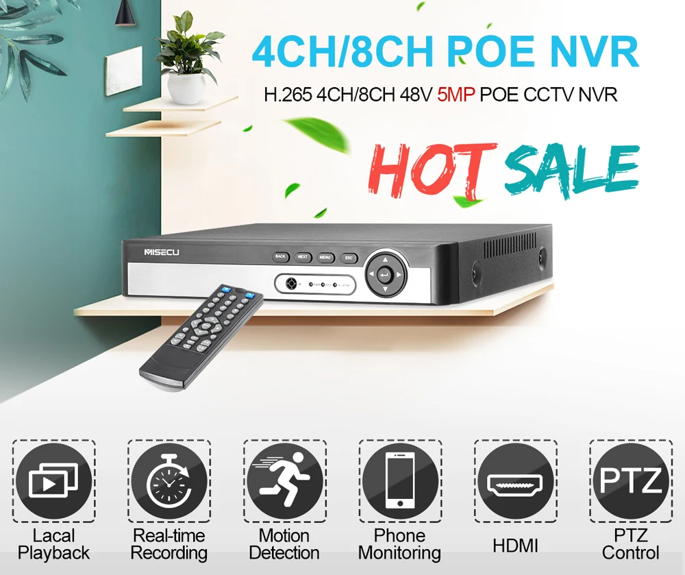 Наш NVR оснащен пультом дистанционного управления. Более гибкий и удобный в эксплуатации Наш 4CH 8CH NVR может поддерживать 5MP max. Другие NVR поддерживают только 4MP max Наш 8-канальный POE NVR может работать до 16 каналов, поэтому вы можете подключить 16 камер max с помощью POE-переключателя. Другие NVR поддерживают только 8 каналов max.