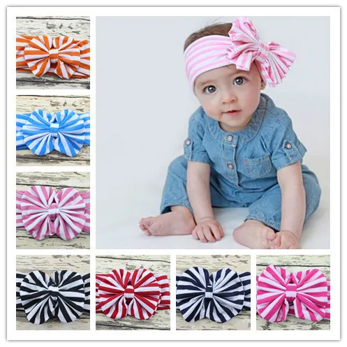 Новый Полосатый Стиль с большим бантом тюрбан головной убор для детей...