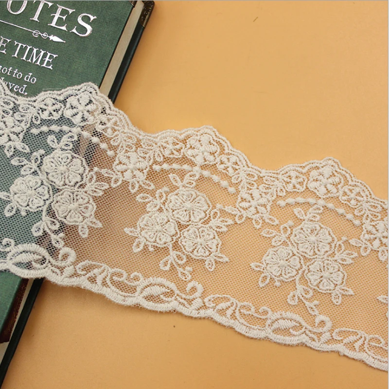 Материал: полиэстер + хлопок Цвет: молочно-белый, бежевый, черный Длина: 19 ярдов. Ширина: 8 см Преобразование: 1 метр = 0,91 Ярд. 1 дюйм = 2,54 см. 1 см = 0,393 дюйма Использование: Свадебное украшение, юбка, воротник, подол, сумки, украшение для одежды DIY и т. д. Больше кружева: //lacesvogue.aliexpress.com/store/915113