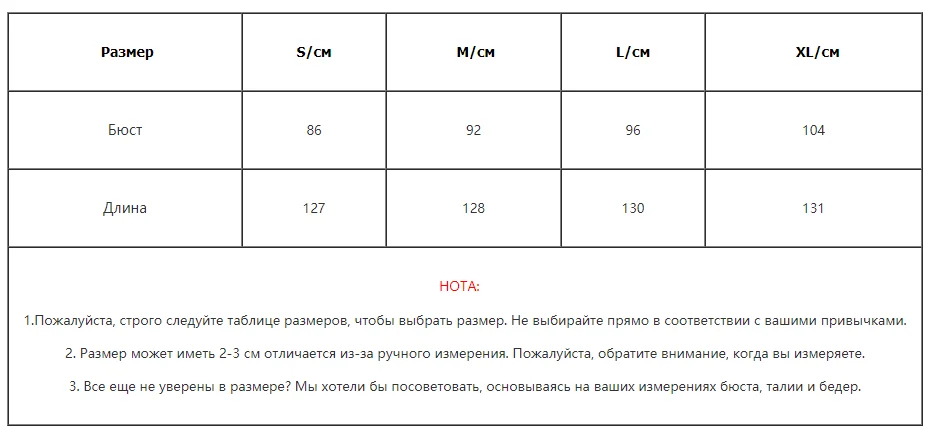 Таблица размеров