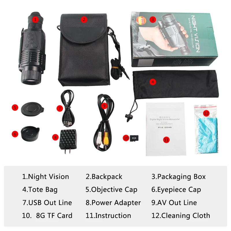 Ночное видение-это цифровой Монокуляр ночного видения, который сочетает в себе лучшие Особенности устройства ночного видения, видеорегистратора, оснастки и монокуляра. Встроенный рекордер: Этот Монокуляр поставляется со встроенным рекордером. Он может записывать все ваши поздние ночные приключения, чтобы вы могли просматривать их снова. Он хранит записанное видео в встроенной tf-карте, которую вы можете просмотреть напрямую или сохранить на вашем компьютере только с помощью usb-разъема. Интегрированный осветитель: монокулярный чувствительный CMOS Массив имеет широкий спектр рабочей яркости. Не говоря уже о том, что Монокуляр также имеет свой собственный Встроенный инфракрасный осветитель, который повышает уровень эффективности этого устройства. Это означает, что вы сможете просматривать объекты на различных уровнях доступный светильник, будь то полная темнота или под светильник Луны. Он прост в эксплуатации, а запись и другие функции легко перемещаются.