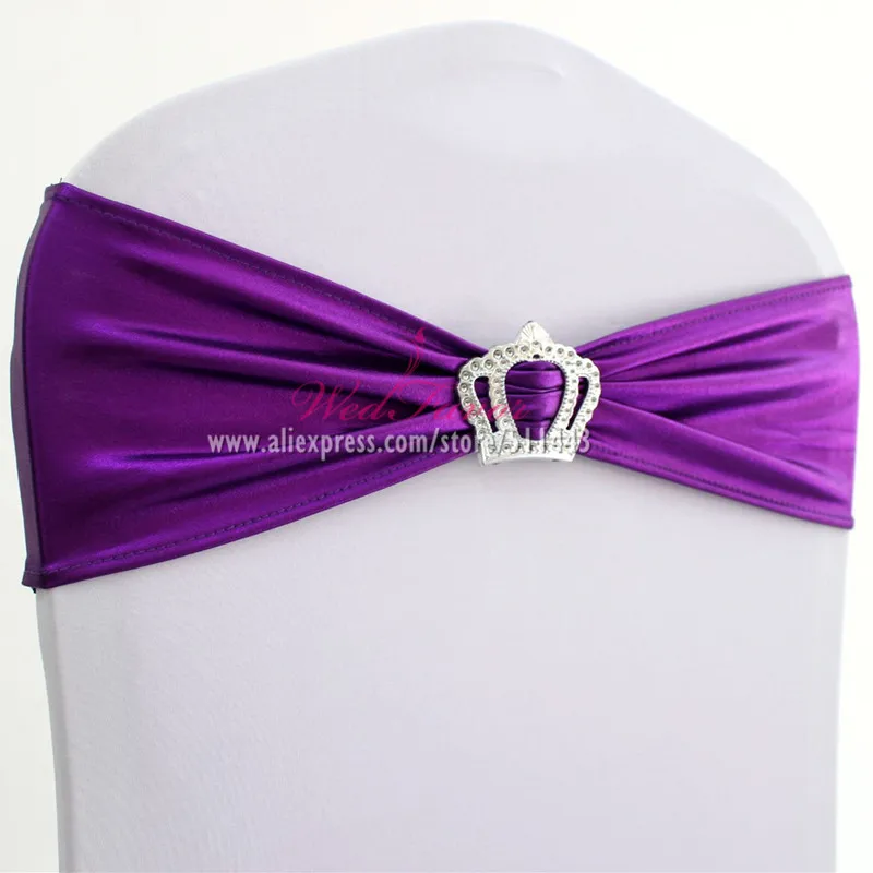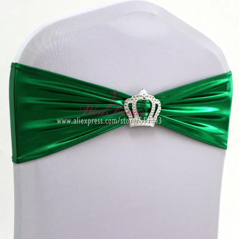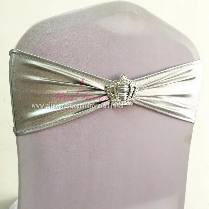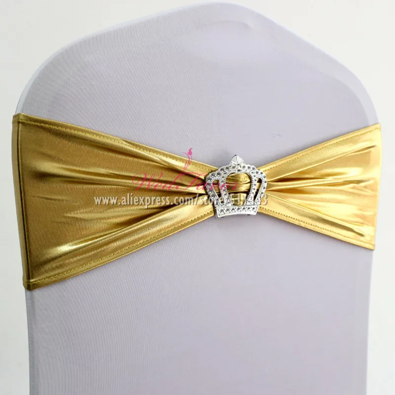 10 шт., 50 шт., металлик, золото, серебро, спандекс, эластичная повязка на стул, пряжка с короной, эластичная лайкра, Свадебная лента на стул, галстук-бабочка
