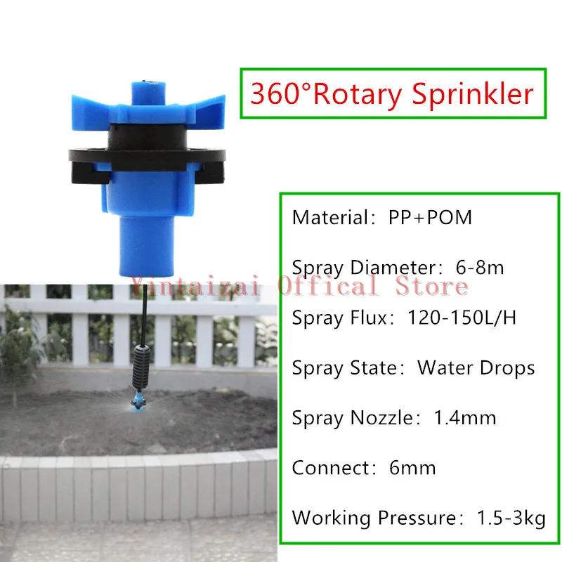 100 шт 360 градусов роторный спринклер с 1/2 "винтовым соединителем Тепличный полив капельного орошения фитинги