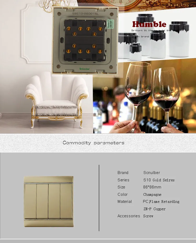 86 мм Стандартный шампанское 16A 250v умный дом 4 gang 2 way настенный выключатель пластины Чехлы Декоративные