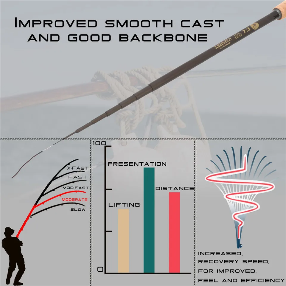 Идеально подходит для ручьев и рек-Предназначен для плавного литья и хорошей опоры. Большое удовольствие для ловли мелкой дикой форели, а также для крупных рыб. И линия уровня и коническая линия работоспособны для литья. Отличный выбор для пеших прогулок и пеших прогулок.