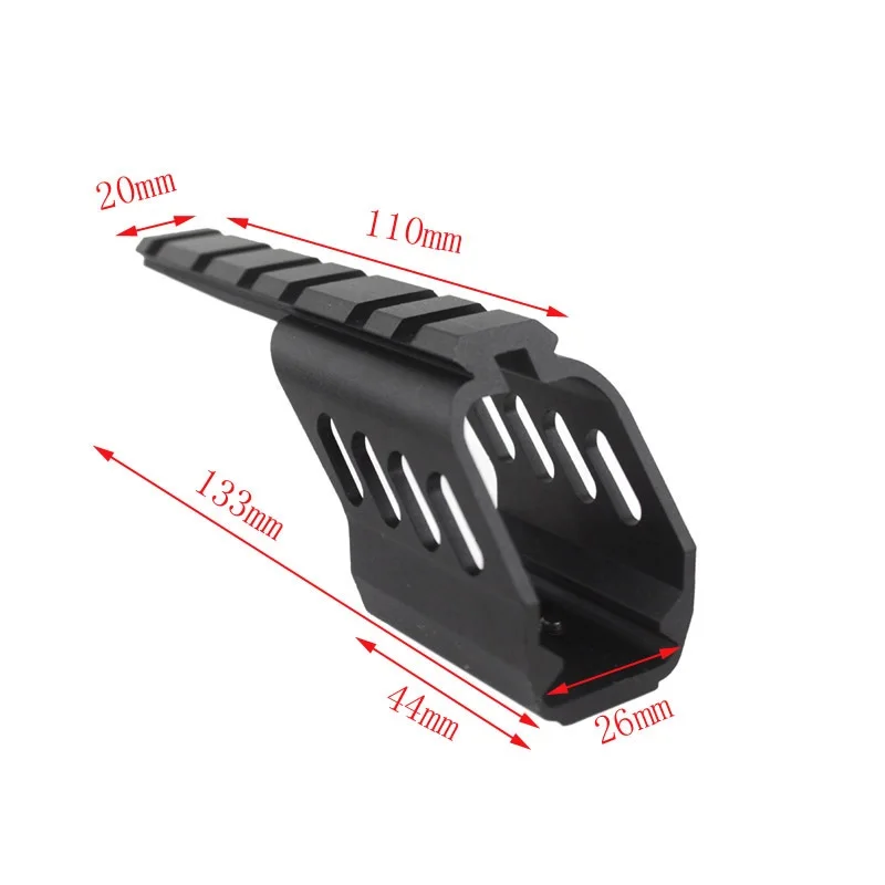 Материал: алюминиевый сплав с ЧПУ Рельс: 20 мм Отделка: анодная закалка класса II Вес: 90 г Совместимый 17/18 Glock Длина верхней рейки: 110 мм