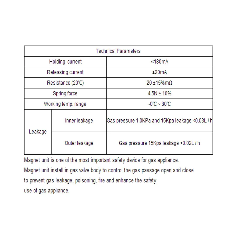 ОписаниеОткрытие электрического тока: <= 180 мАЗамыкающий электрический ток: >= 20 мАСопротивление катушки спроектировано значение (20 +-15%) МОмПолная Пружина сжатия: 3.0N +-10%Диапазон температуры открытия:-10-120 градусов ЦельсияИспользование: подходит для продукта, газовых нагревателей, газовой печи, газовых приборов в качестве компонентов управления.Область применения: природный газ, сжиженный нефтяной газ, Искусственный уголь.ОплатаМы принимаем western union или кредитную карту.Пожалуйста, свяжитесь с нами для получения дополнительной информации о том, как оплатить или какие-либо запросы относительно оплаты.ОтгрузкаМы не несем ответственности за недоставленный адрес. Мы оставляем за собой право повторно взимать плату за доставку товаров возвращенных отправителю по причине указания неверного адреса.Товар будет отправлен в течение 7 дней после оплаты.Пожалуйста, свяжитесь с нами, если товар не описан в течение 7 дней после получения.Иногда это может задержаться из-за вашего местного таможенного оформления. Если вы не получили товар, пожалуйста, свяжитесь с нами.Мы не предлагаем комбинированную доставку.Мы не несем ответственности за пошлины или налоги в вашей стране.Возврат7 дней гарантии, будьте уверены!Все товары проходят 100% Фирменная новинка. Все товары были протестированы перед отправкой.Мы можем обменять товар в течение 30 дней после получения, если он неисправен. Возвращенный товар должен иметь всю оригинальную упаковку и аксессуары с подтверждением кода возврата.Покупатель несет ответственность за возврат стоимости доставки. Возврат будет произведен после получения возвращенного товара.Процесс возврата может занять до 3 рабочих дней после получения товара.Если товар не соответствует описанию или не соответствует описанию, мы принимаем 100% возврат средств.ПримечаниеВсе товары будут упакованы без розничной коробки.Мы стремимся заработать 100% идеальные баллы «пять звезд» от вас. Звездные оценки очень важны для нас. Если что-то о вашей транзакции не соответствует вашим ожиданиям. Пожалуйста, дайте нам знать и дайте нам возможность сделать все правильно, прежде чем оставить отзывы.Для оптового количества более 100 шт., пожалуйста, пришлите нам электронное письмо:INFO@nbearth-star.comДля обсуждения цены за единицу.Для большего количества товаров, пожалуйста, посетите:Http://www.gasmadeinchina.com/