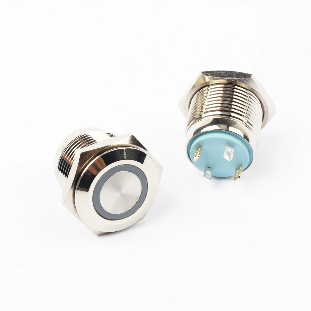 16 мм металлический латунный кнопочный переключатель плоское круглое световое кольцо мгновенный 1NO автомобильный пресс кнопочный Контактный Терминал