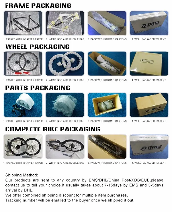 По умолчанию, мы отправляем товар с помощью EMS. Углеродные Диски и колесных являются относительно больших размеров, но легкие, поэтому они являются наиболее эффективных с точки зрения затрат с EMS, как правило, это займет 7-12 дней, чтобы прибыть после того, как будет отправлен.