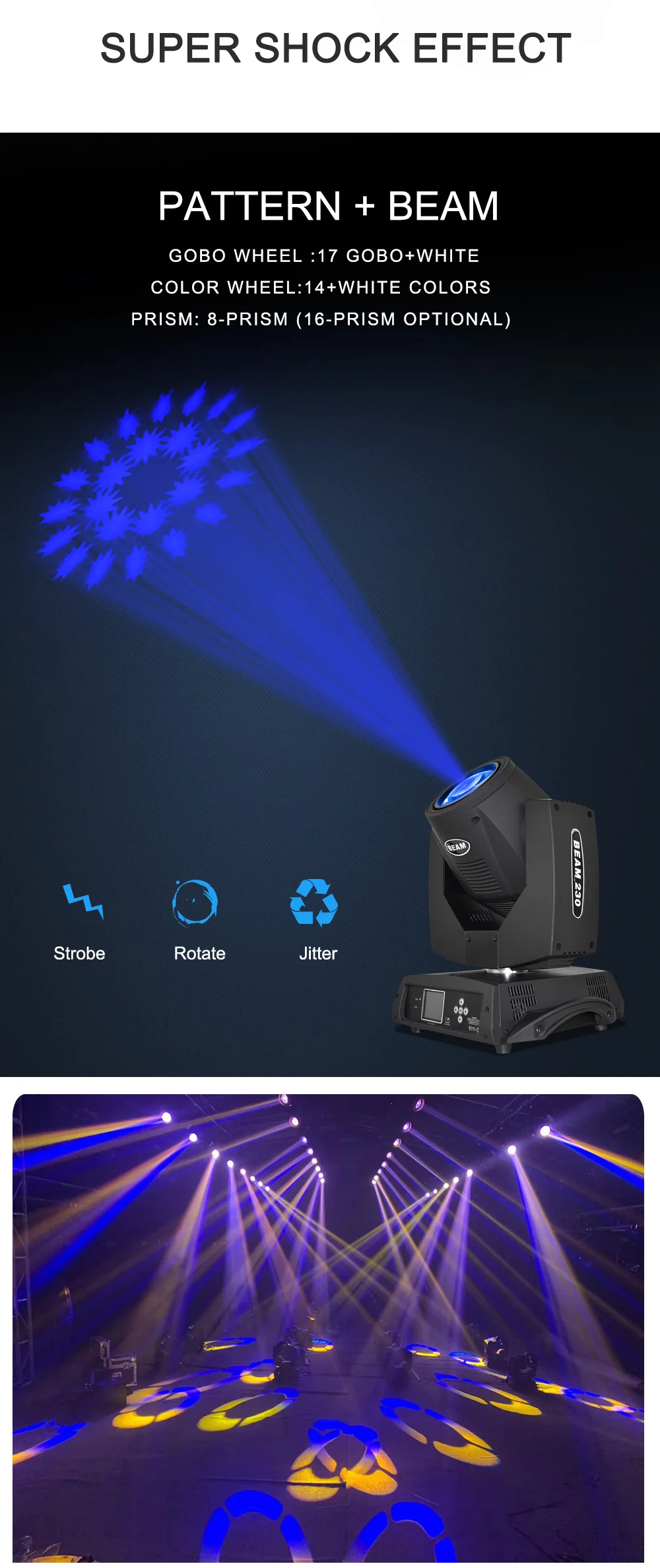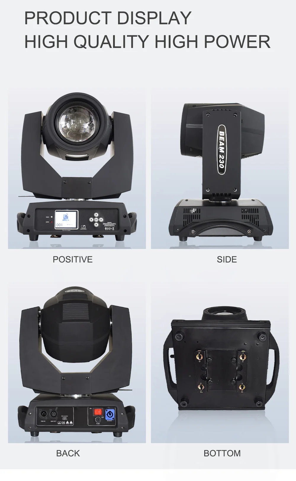 Входное напряжение: 90-245 В/50 ~ 60 Гц Источник питания: 300 Вт Лампа: оригинальная Philps7R Колесо Gobo: 17 Gobo + белый Колесо Цвета: 14 + белый цвет s Угол Мороза: самый большой-40 ° Призма: 8-Призма (16-Призма опционально) Зум: 0-8 градусов электронный зум Данные: XLR IN/OUT Powercon IN/OUT Мороз: 0-100%. Диммер: 0-100%. Фокус: электронный. Каналы: 16 каналов Дисплей: сенсорный экран Затвор: 0,5-9 раз/секундный стробоскоп Сковорода: 540 ° Наклон: 270 ° Чувствительный и высокоскоростной, 3-фазный двигатель для движения X/Y Международный стандарт DMX512 16 каналов управления. DMX, случайный, автоматический, голосовой и спящий режим. Использование высокотехнологичной платы постоянного тока, напряжение 36 В/12 В Встроенные высококачественные магнитные компоненты обеспечивают стабильную передачу сигнала Размер: 46*38,5*55 см Вес нетто: 17,5кг Вес брутто: 20 кг