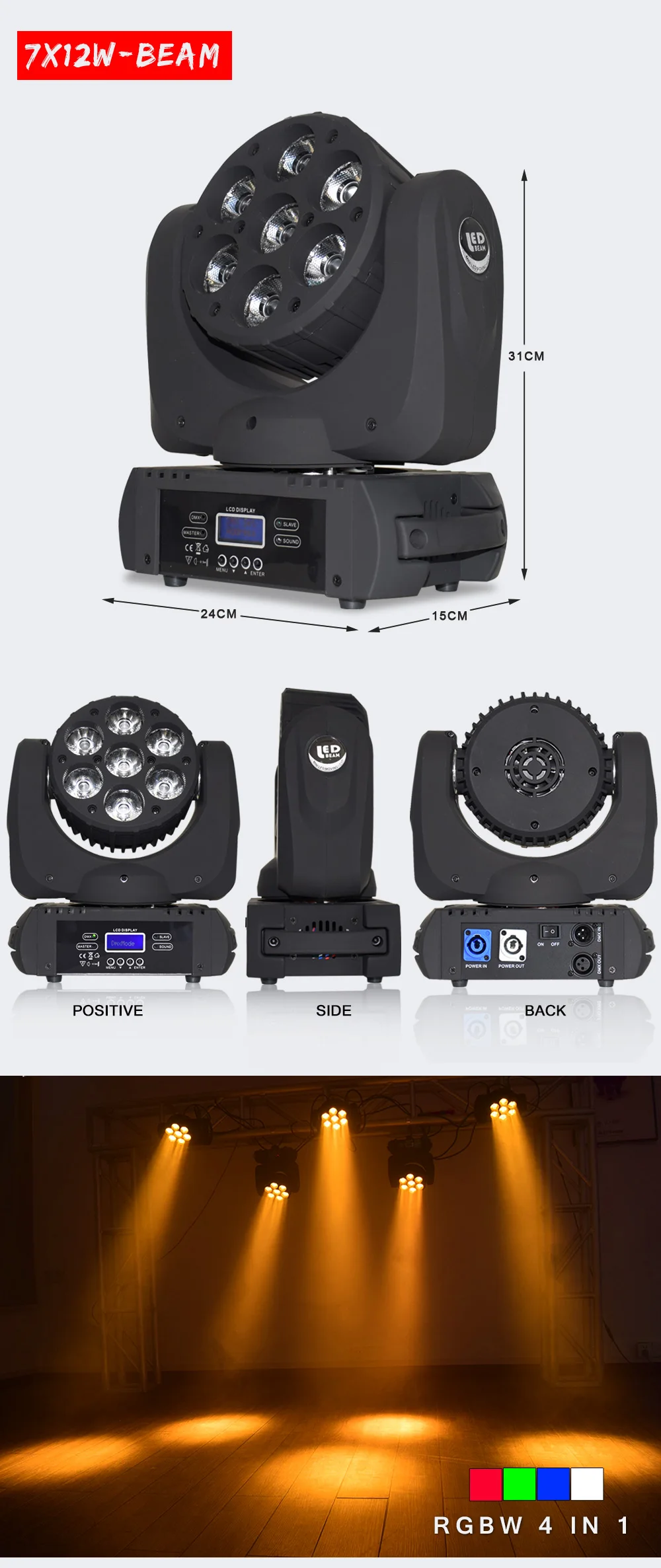 -90 Вт высокой мощности Светодиодный переносное потолочное освещение эффект с 7x12-Watt светодиодный s -9 или 16 каналов DMX -3 режима работы: DMX-512, звук активный или мастер/раб -Затемнение: 0% - 100% -13,5 градусов угол светового луча -Панорама: 570 градусов; Наклон: 180 градусов -Светодиодный DMX 4 кнопки меню системы -Шаговые двигатели с микро шагами -Омега в комплекте для крепления зажима -3-контактный XLR Сделано в Китае внутрь или наружу -Охлаждение вентилятора -Эффект стробоскопа/импульса; Случайный стробоскоп медленного до быстрого -Экстремально Длинная продолжительность жизни светодиодный (50000 hr. Рейтинг) -Многофункциональное напряжение: 100-240 В, 50 Гц/60 Гц -Потребляемая мощность: макс. 90 Вт -Светильник источник: 7x 12-ваттный высокого качества 4in1 светодиоды -Размеры (ДхШхВ): 304x267x167мм -Вес: 5,7 кг.