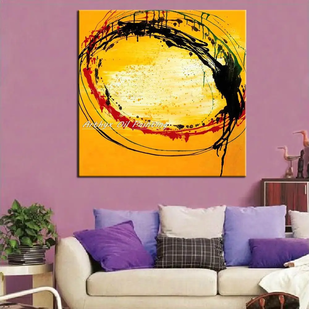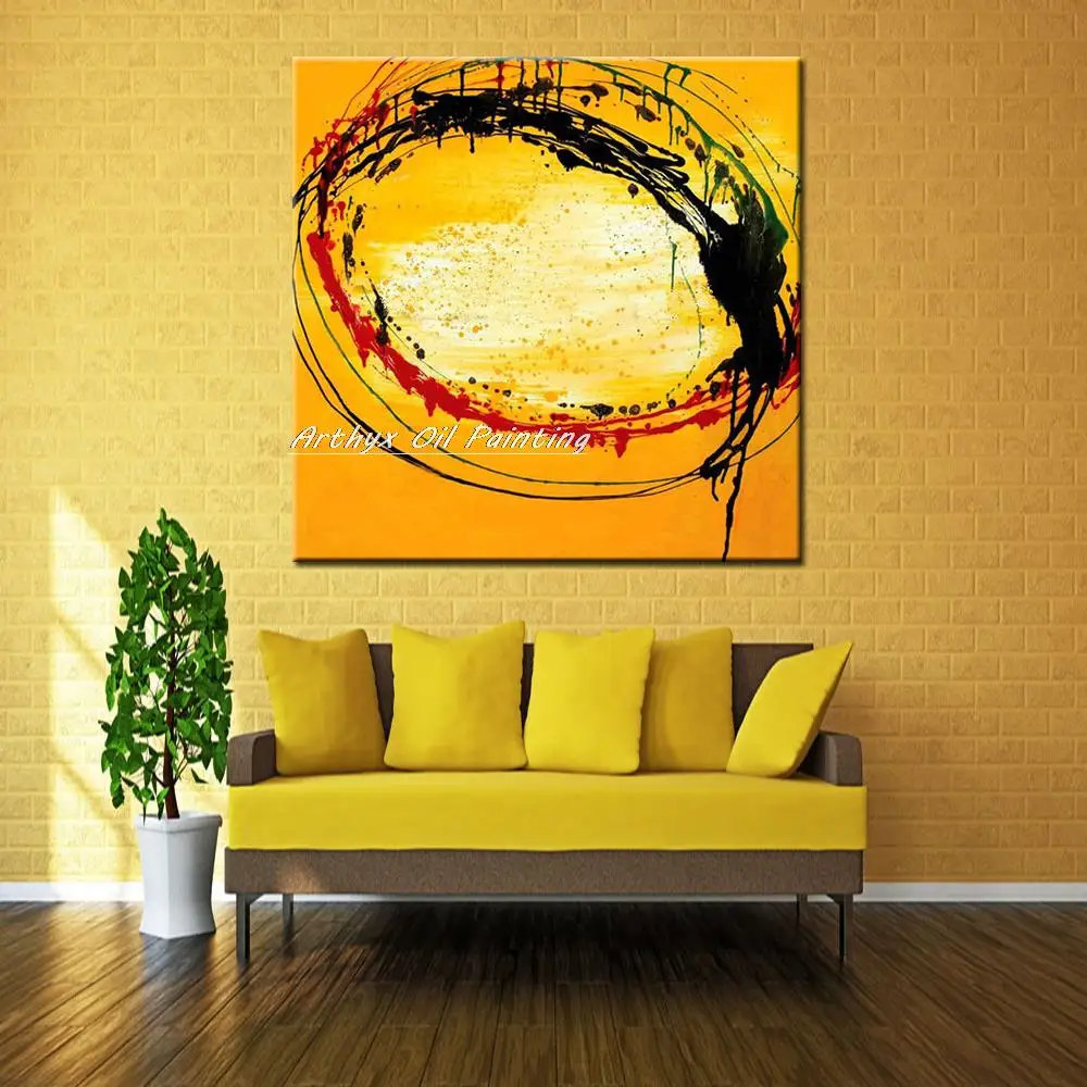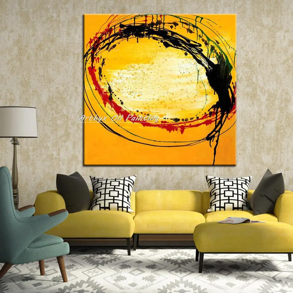 Arthyx ручная работа красный черный желтый Масляные картины на холсте современный абстрактный большой размер настенные художественные картины для гостиной домашний декор
