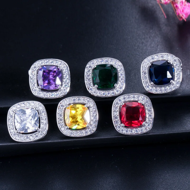 Трехцветный модный квадратный кулон ожерелье и серьги кольцо для женщин ювелирные изделия Micro Pave романтический фиолетовый кубический цирконий Ювелирные наборы JS189