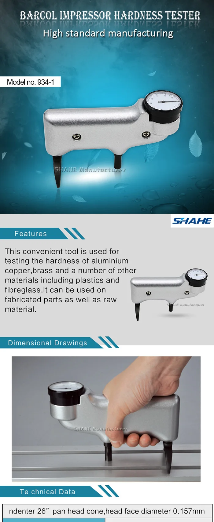 Портативный: Impressor-это удобный инструмент для тестирования твердости алюминия, алюминиевых сплавов, меди, латуни и других материалов, включая пластик и стекловолокно. Инструмент предназначен для использования на изготовленных деталях и сборках, а также на сырье Простота в использовании: не требуется опыта; Можно использовать d в любом положении и в любом пространстве, что позволит оператору 'руку. Показания твердости мгновенно указываются на циферблате, который делится на сто степеней. Нет предварительной загрузки ожидания или отдельных измерений Легкий вес: impressor весит всего 0,55 кг и поставляется в комплекте с сумкой чехол, ключ для настройки гитары и две запасные Индентор точек весом более 2 кг.