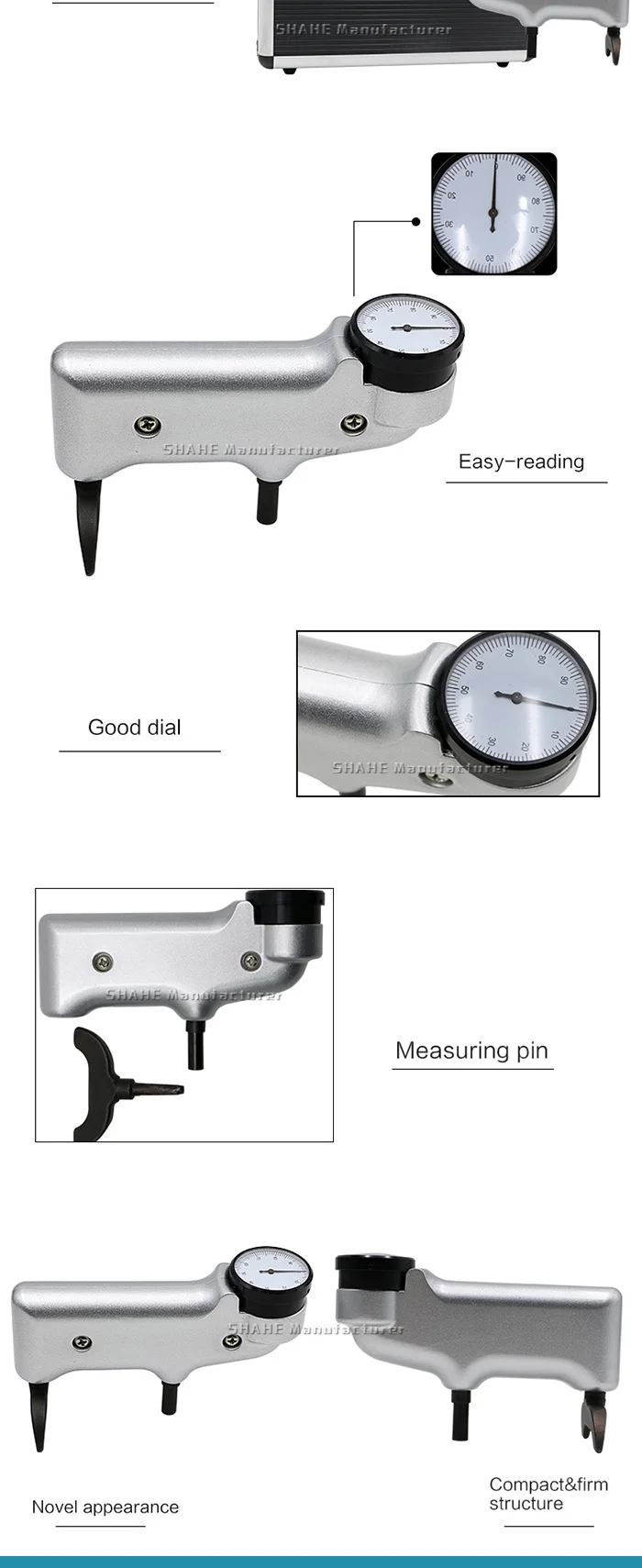 1. Импрессор лучше всего подходит для тестирования однородных материалов. Материалы гранулированные. Фиброд или грубая распорка будет производить широкий диапазон показаний твердости из-за небольшого диаметра точки ienter. 2. Для точных показаний материал должен быть не менее 1/32 "толстым и достаточно большим для минимального расстояния 1/8" в любом направлении от точки индентера до края образца. Область тестирования должна быть гладкой и свободной от механических повреждений. 3. Просто прижмите светильник к прибору, чтобы втянуть пружинную точку в материал. Точка индентера должна быть перпендикулярна проверяемой поверхности. 4. На очень мягких металлах, самое высокое считывание должно быть использовано, так как холодный поток позволяет пружинной индентерной точке продолжать проникновение.