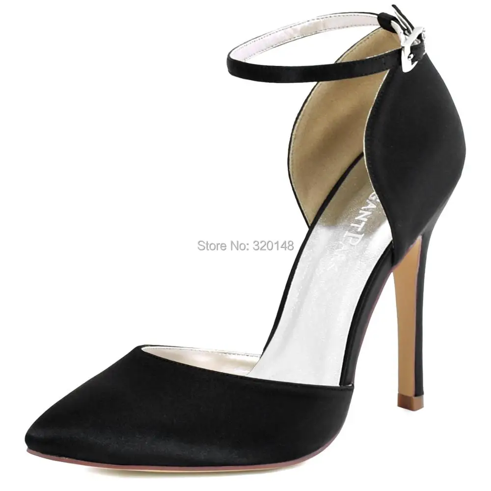 Женские черные туфли-лодочки на высоком каблуке с острым носком атласные