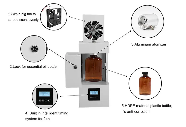 Чтобы хорошо Применить для дизайна алмазной серии, внешняя крышка диффузионной системы аромата изготовлена из металла, внутри много электрических частей, сделанных Al и другими металлами