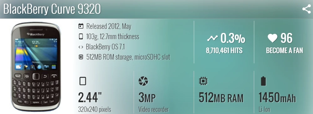Размер 320x240 пикселей, 2,44 дюймов (~ 164 ppi плотность пикселей)