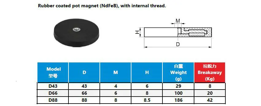* Тяговые силы были протестированы при комнатной температуре на пластине из полированной стали (Q235B) толщиной 10 мм (80 мм/мин). Максимальное отклонение-10% по сравнению с указанным значением возможно в исключительных случаях. Значение в целом превышено. В зависимости от типа применения (ситуации установки, температуры, прилавка якоря и т. Д.) силы могут сильно повлиять. Указанные значения предназначены для справки.