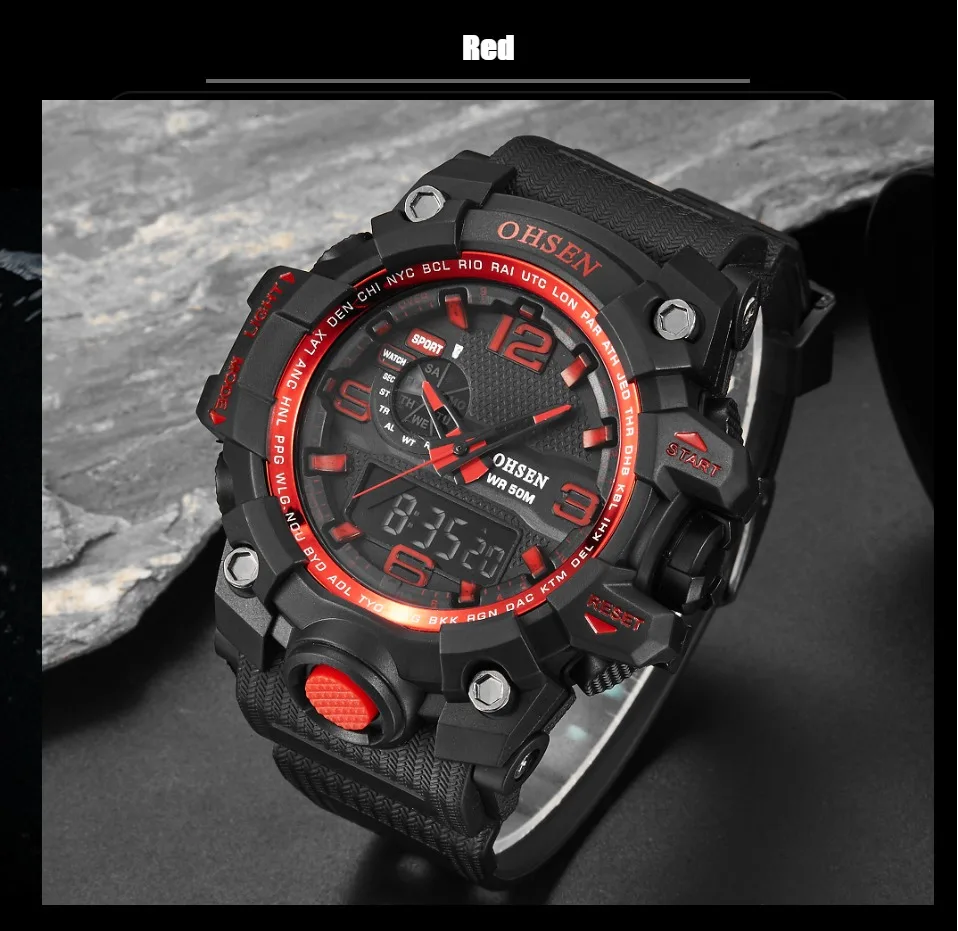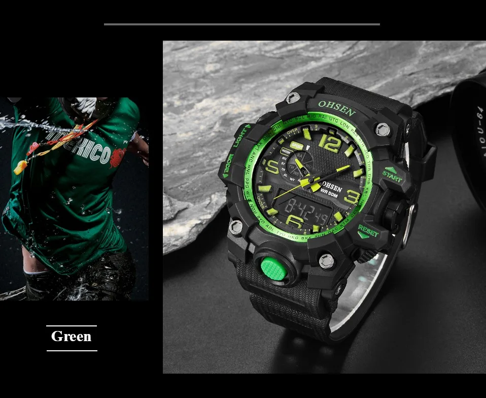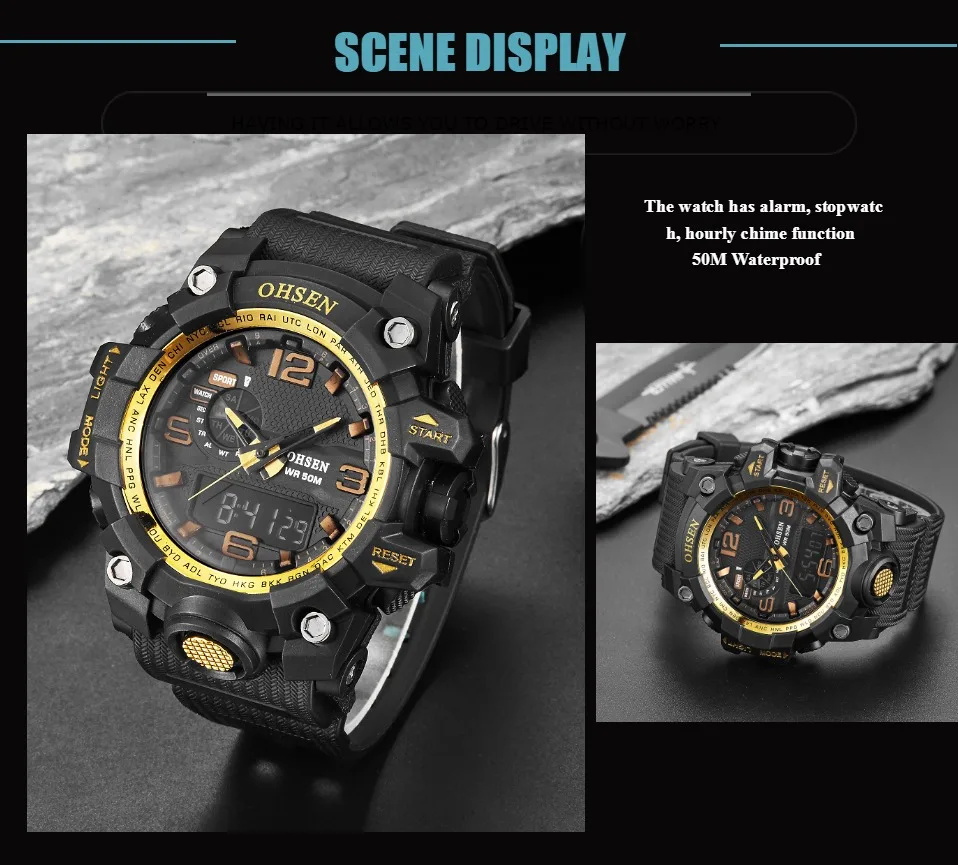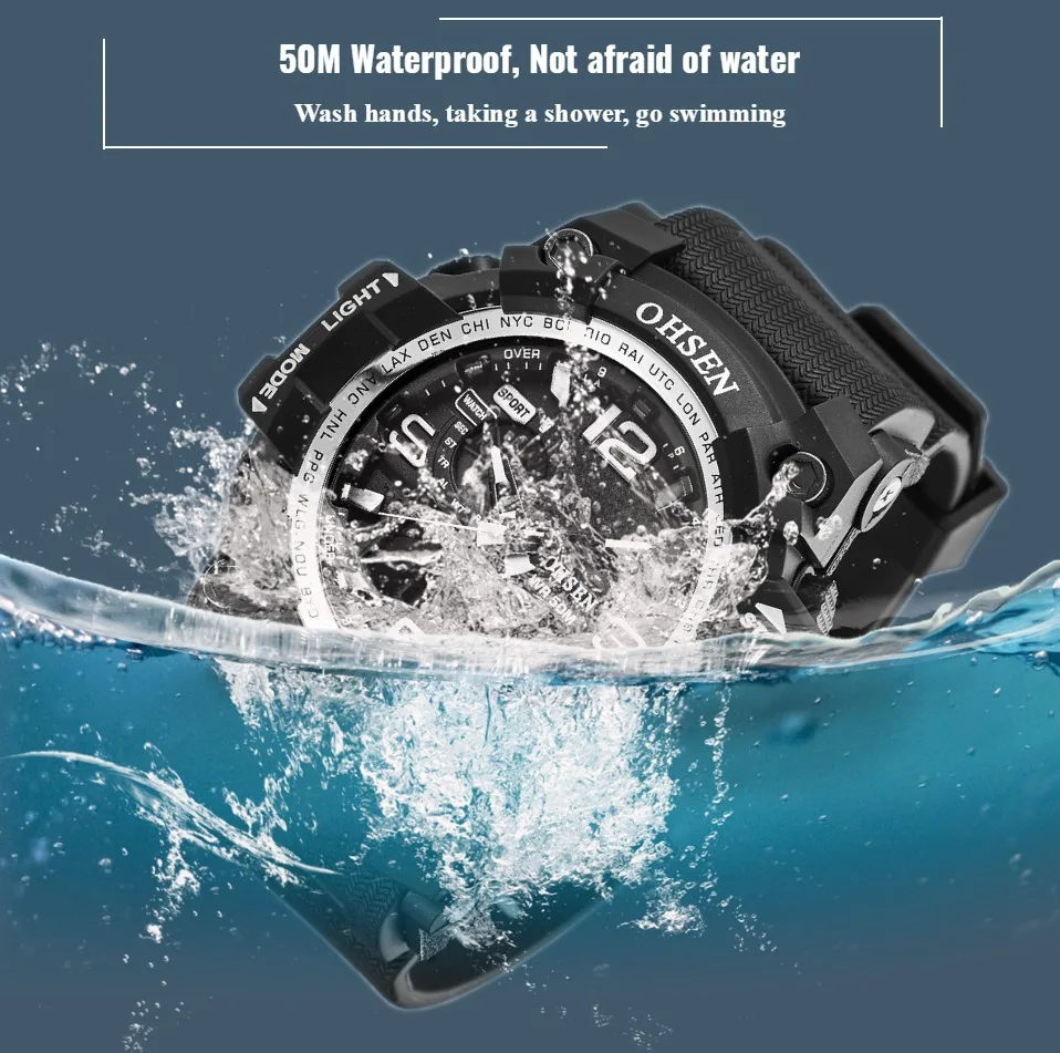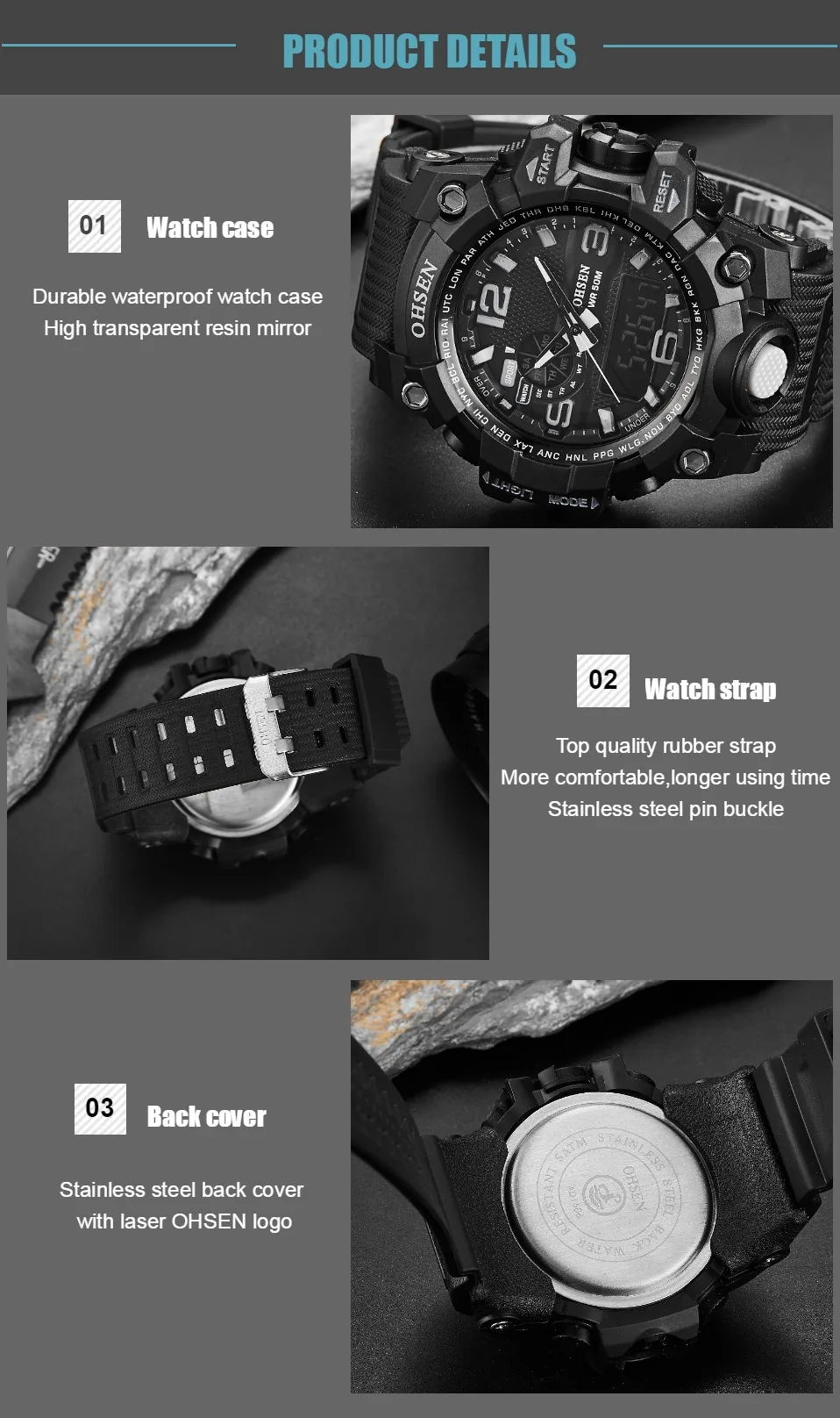 Прочный водонепроницаемый чехол для часов Японская кнопочная ячейка maxelll, более долгий срок службы Резиновый ремешок хорошего качества, более удобный Задняя крышка из нержавеющей стали с лазерным логотипом OHSEN