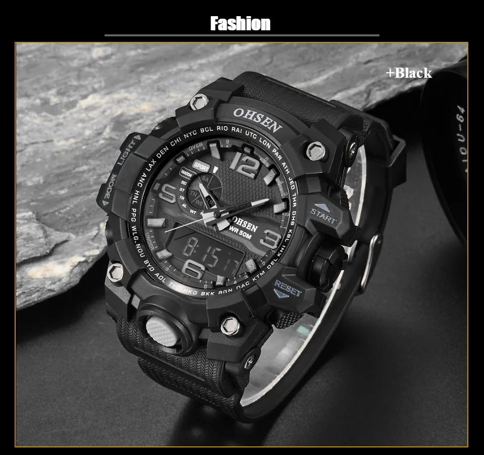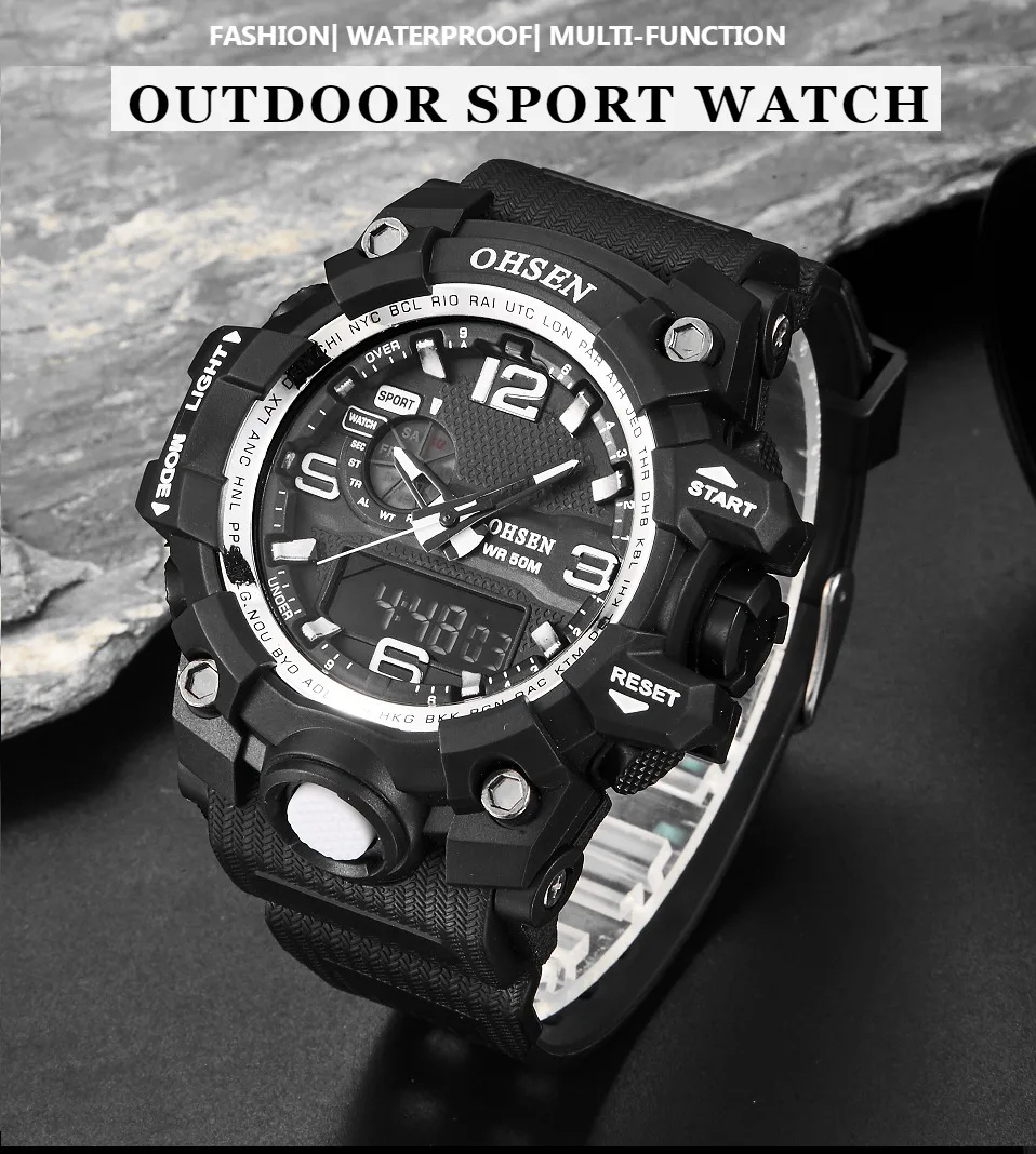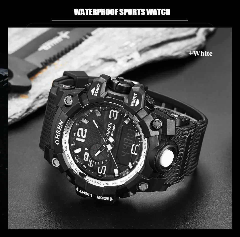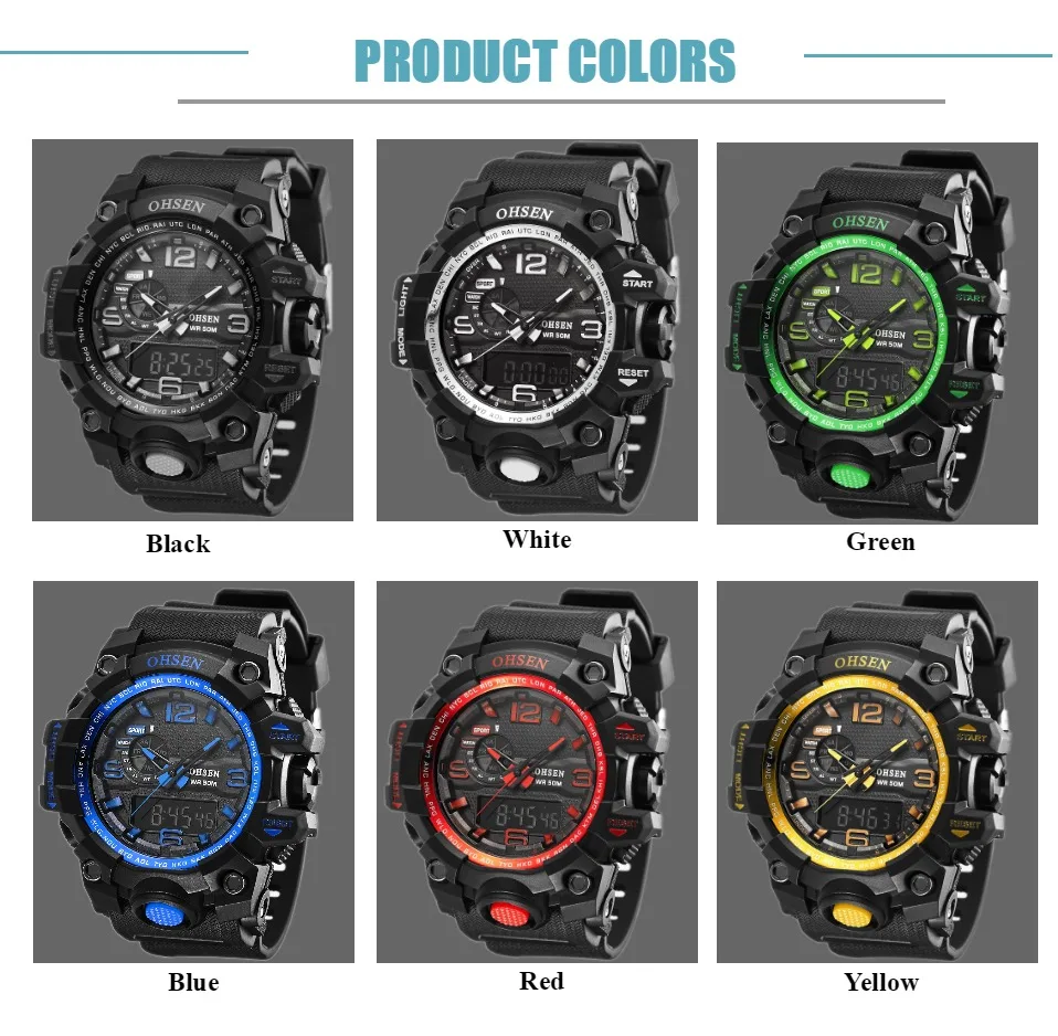 Прочный водонепроницаемый чехол для часов Японская кнопочная ячейка maxelll, более долгий срок службы Резиновый ремешок хорошего качества, более удобный Задняя крышка из нержавеющей стали с лазерным логотипом OHSEN
