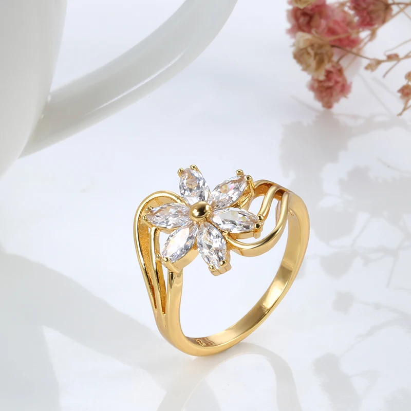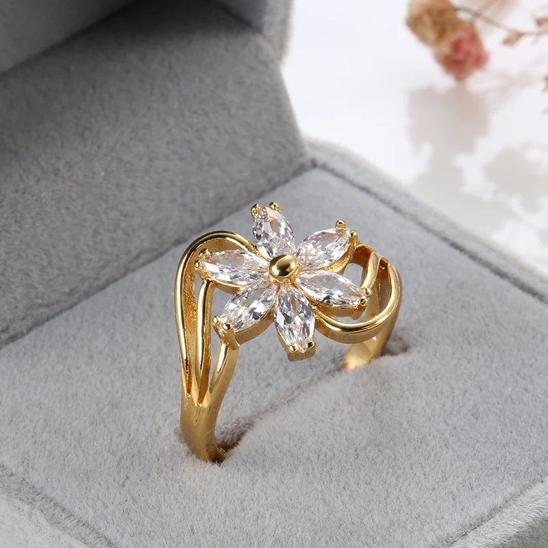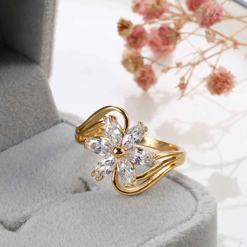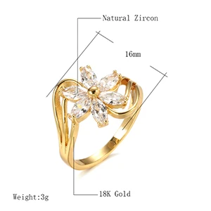 Кольцо Kinel с натуральным цирконием, ювелирное изделие, 18 К, настоящее золото, Кристальный цветок, кольца для женщин, свадебные ювелирные изделия для невесты