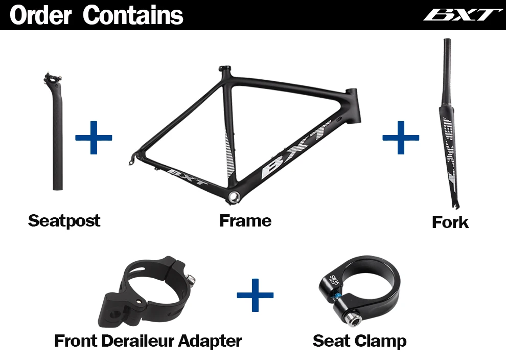 Orader содержит: рама + подседельный штырь + вилка + зажим сиденья + передний переключатель адаптера;