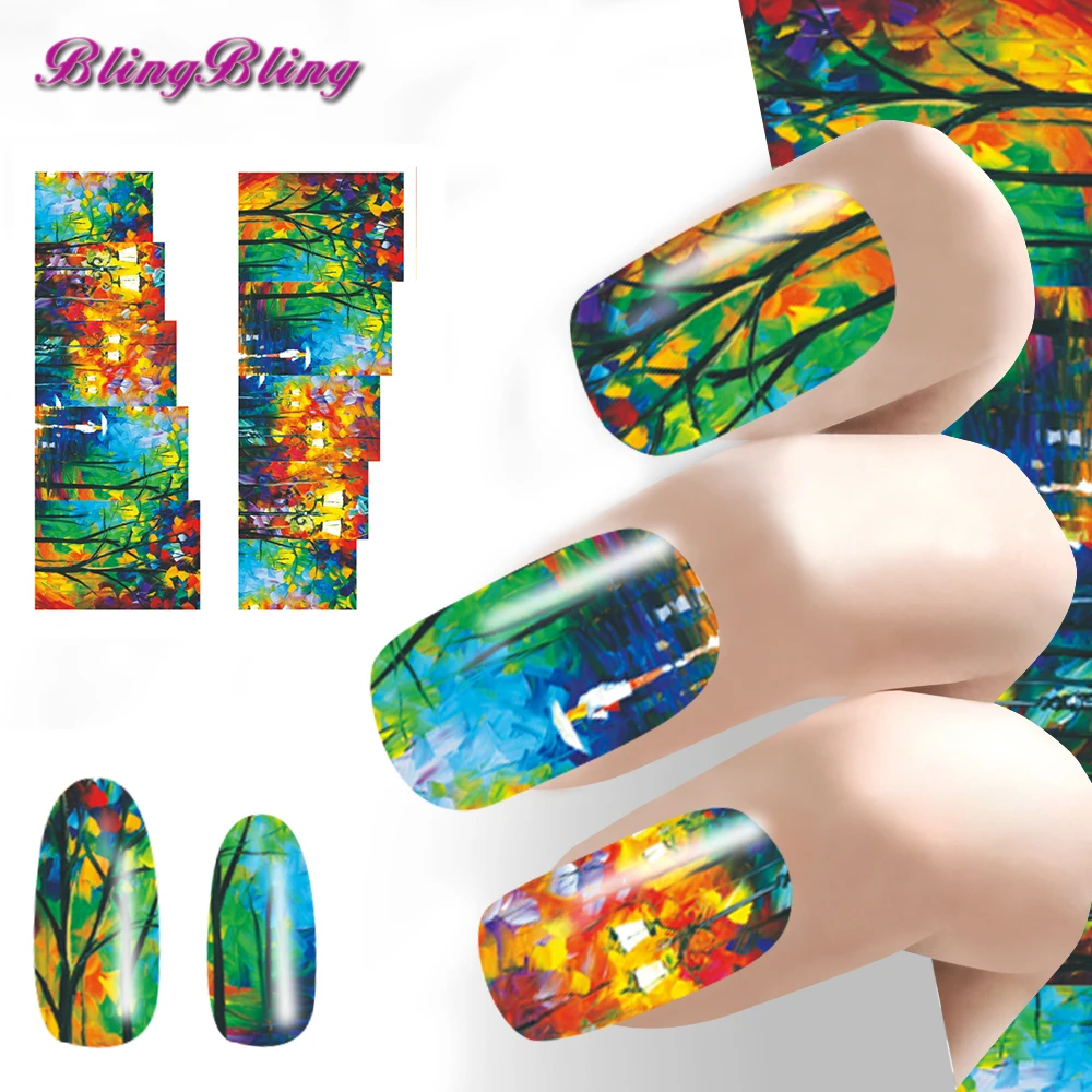 2 шт. Новый Nail Стикеры красочные пролитой Краски Дизайн ногтей переноса воды