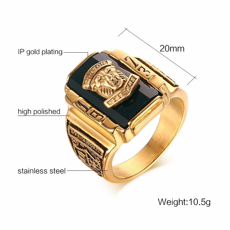 Модные мужские кольца золотистого цвета из нержавеющей стали, модель 1973 года, кольцо в стиле «Уолтон Тигр» для школьников, геометрический дизайн, черный/зеленый/красный/синий
