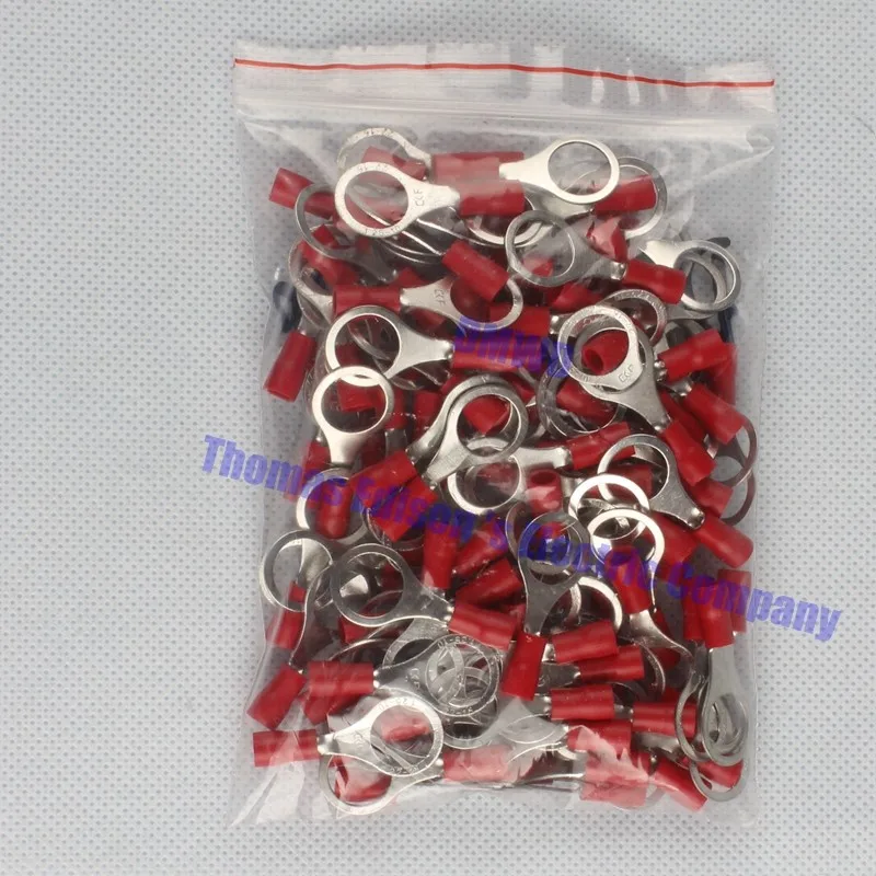 RV1.25-10 Красный 22-16 AWG 0.5-1.5mm2 Изоляцией Кольцо Терминала Разъем Провода Соединительный Кабель 100 Шт./упак. RV1-10