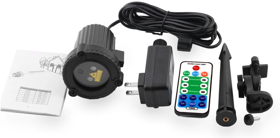 IP65 Водонепроницаемый лазерный проектор с 9.8ft (3 м) кабель X 1, Мощность адаптер X 1, винтов X 1, stand× 1, радиочастотный пульт дистанционного управления X 1 (без аккумулятора CR2025 3V) , руководство пользователя (на английском языке) x1.