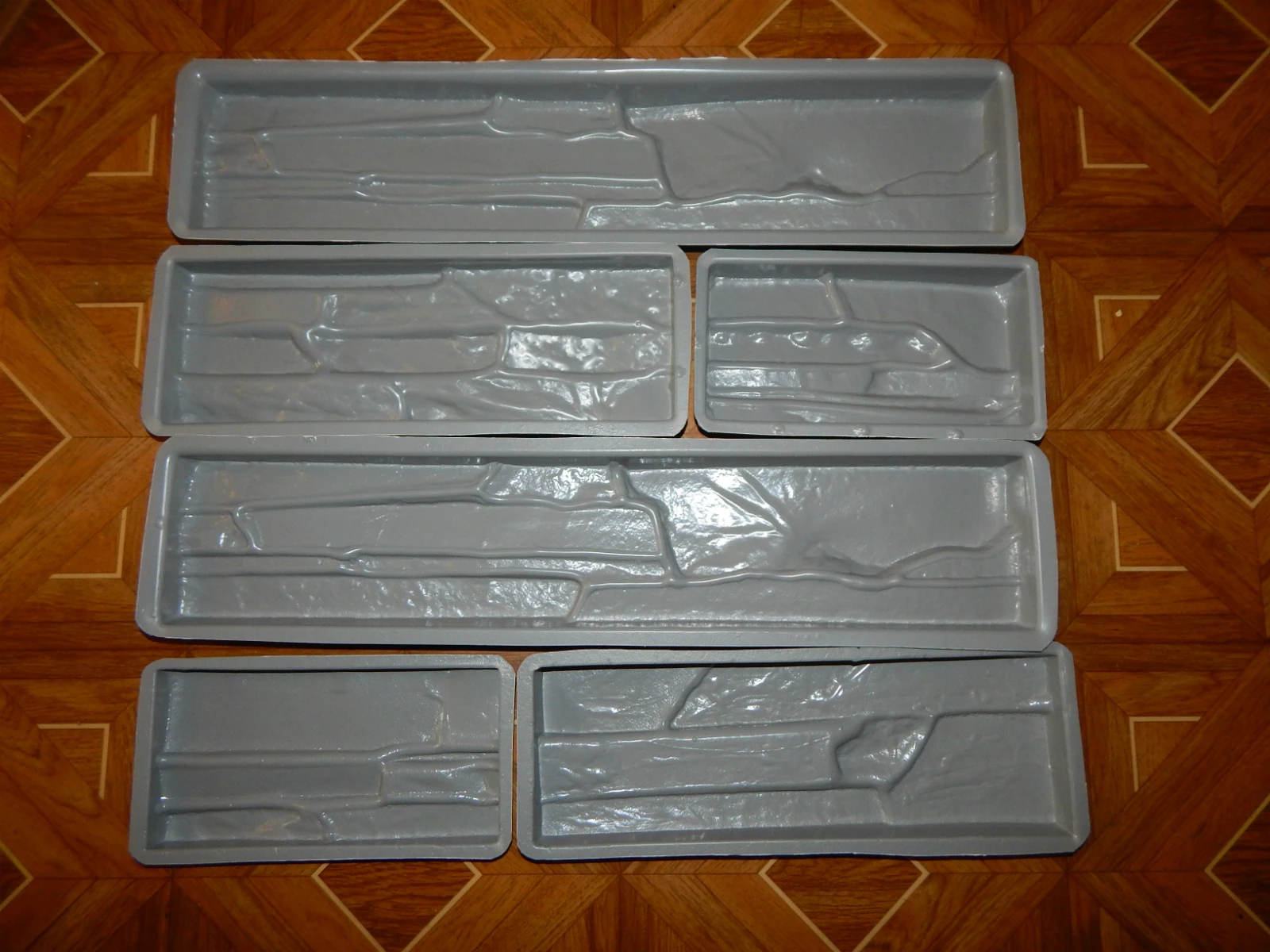 Описание:6 шт. пластмассовых форм различной текстуры.Передняя поверхность пластиковой формы имитирует натуральный камень.